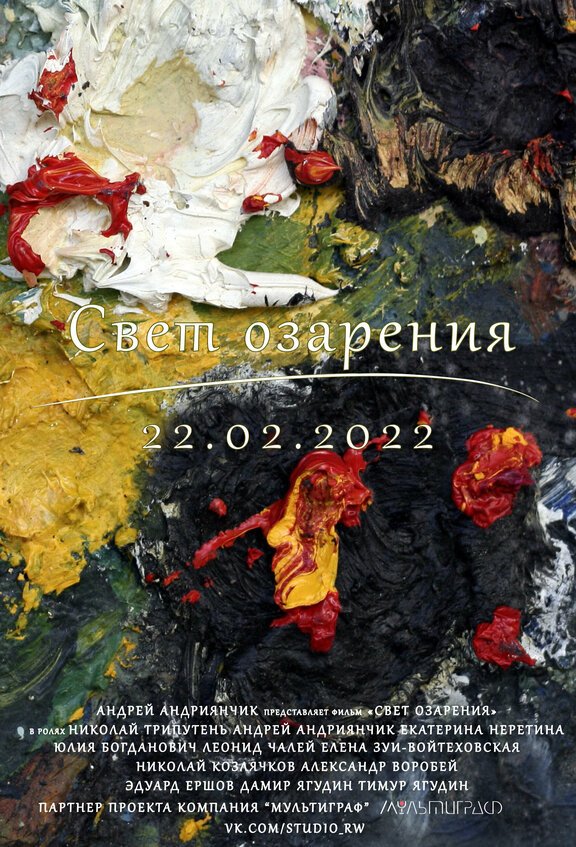 Свет озарения 2021Вас также могут заинтересовать Все обсуждения.Комментарии 0 Чтобы писать и оценивать комментарии нужно войти или зарегистрироваться | Год: 2021 Скачать фильмСтрана: Белоруссия Производство: Андрей Андриянчик Дата премьеры в мире: 22.02.2022 Режиссёр: Андрей Андриянчик Сценарист: Андрей Андриянчик, Николай Козлячков Актер: Николай Трипутень, Андрей Андриянчик, Александр Воробей, Леонид Чалей, Елена Зуй-Войтеховская, Николай Козлячков, Эдуард Ершов, Юлия Богданович Качество: WEB-DLRip Описание Николай - опытный, но непризнанный художник. Разобраться в неудачах ему помогает Алексей - художник, ставший востребованным благодаря Николаю.